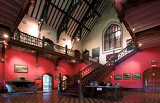 This imposing Grade II* Listed Victorian Gothic Mansion overlooks the magnificent mountains of Snowdonia and Cardigan Bay in North West Wales. Close to the well known resort of Abersoch, it is difficult to imagine a more splendid location for a weekend guitar retreat. Llanbedrog beach with its soft sand and colourful beach huts is a short walk away - and a short walk in the opposite direction past the fine St Pedrog's church is the Glyn Y Weddw pub, both additional music venues during the weekend.